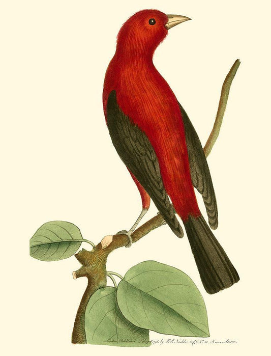 Crimson Birds I White Modern Wood Framed Art Print with Double Matting by Nodder, Frederick P.