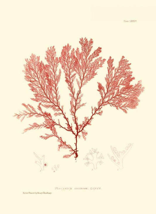 Small Coral on Red I White Modern Wood Framed Art Print with Double Matting by Vision Studio