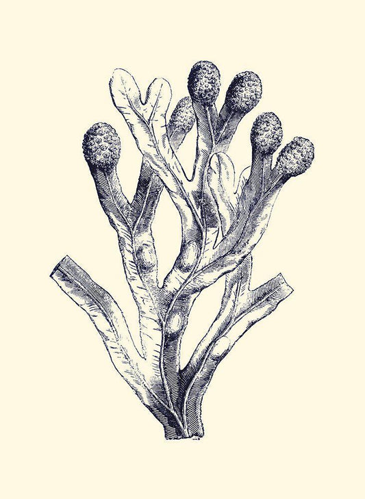 Indigo Kelp I White Modern Wood Framed Art Print with Double Matting by Vision Studio