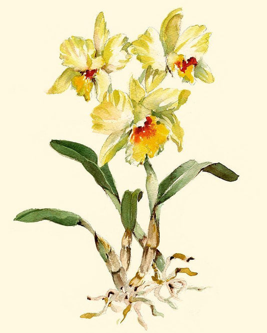 Yellow Cattleya Orchid White Modern Wood Framed Art Print with Double Matting by Waldman, Joy