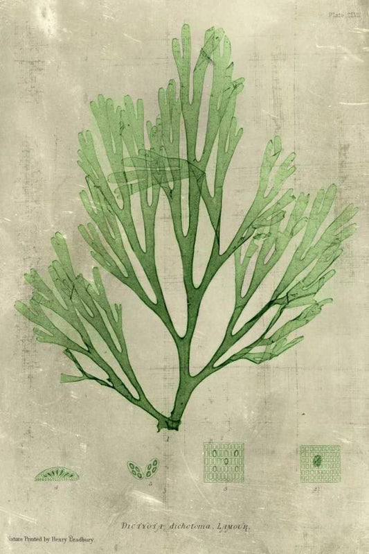 Emerald Seaweed II White Modern Wood Framed Art Print with Double Matting by Unknown