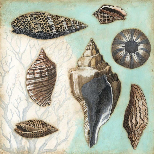 Antique Shell Collage I White Modern Wood Framed Art Print with Double Matting by Meagher, Megan