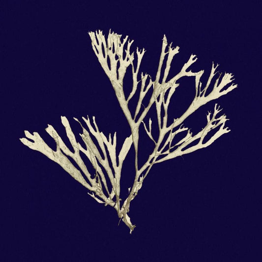 Seaweed on Navy IV White Modern Wood Framed Art Print with Double Matting by Vision Studio