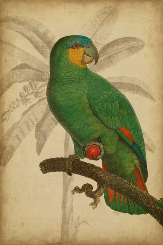 Parrot and Palm I White Modern Wood Framed Art Print with Double Matting by Vision Studio