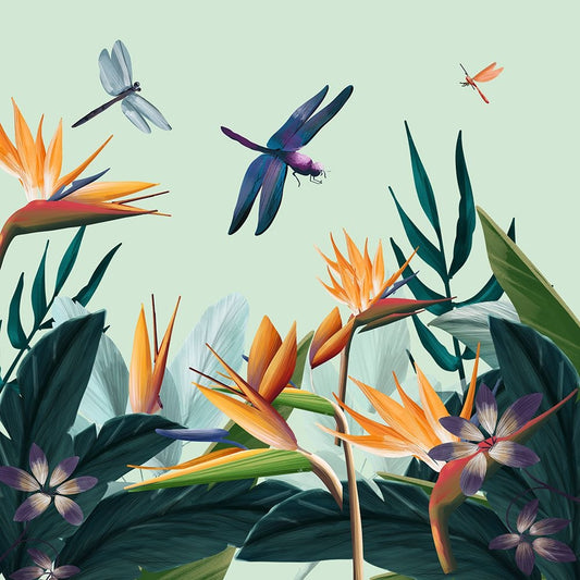 Tropical Flowers II White Modern Wood Framed Art Print with Double Matting by Arctic Frame