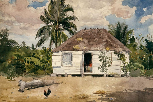 Native hut at Nassau White Modern Wood Framed Art Print with Double Matting by Homer, Winslow