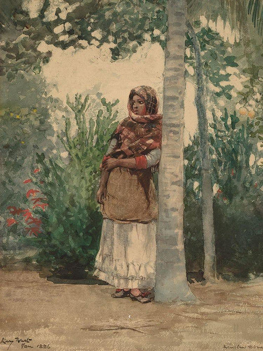 Under a Palm Tree White Modern Wood Framed Art Print with Double Matting by Homer, Winslow