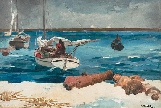 Nassau White Modern Wood Framed Art Print with Double Matting by Homer, Winslow