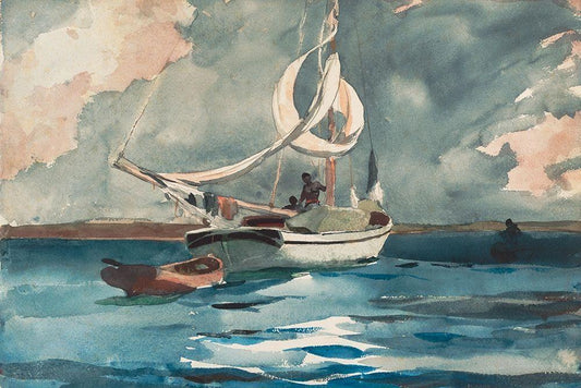 Sloop, Nassau White Modern Wood Framed Art Print with Double Matting by Homer, Winslow