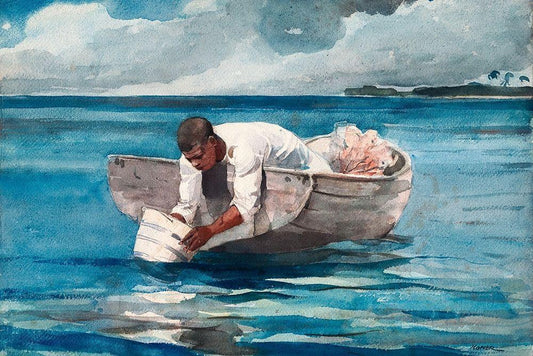 The Conch Divers White Modern Wood Framed Art Print with Double Matting by Homer, Winslow