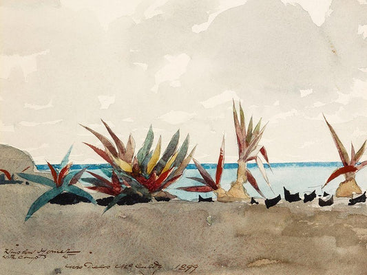 Nassau Beach with Century Plants White Modern Wood Framed Art Print with Double Matting by Homer, Winslow