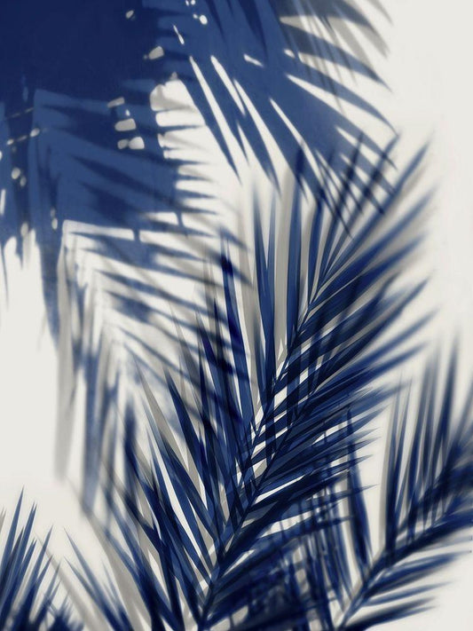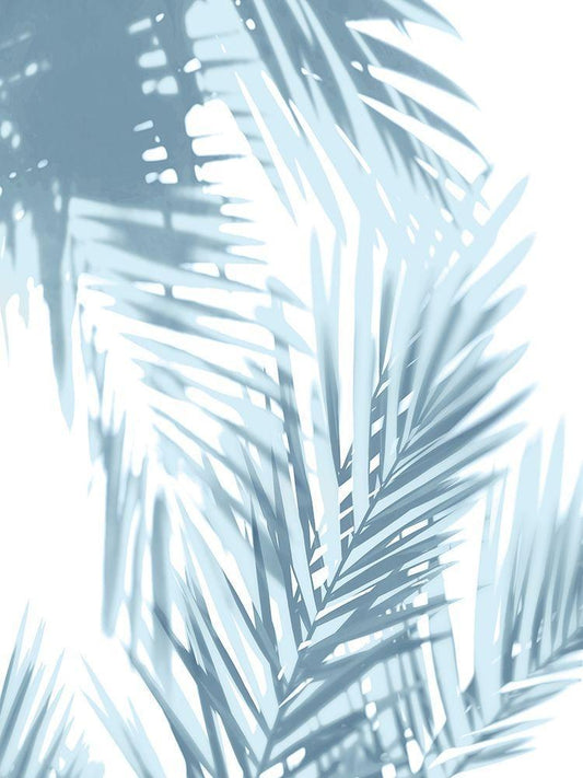 Palm Shadows Blue II White Modern Wood Framed Art Print with Double Matting by Miller, Melonie