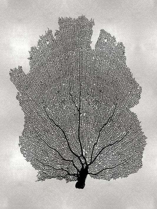 Sea Fan Black on Silver I White Modern Wood Framed Art Print with Double Matting by Miller, Melonie