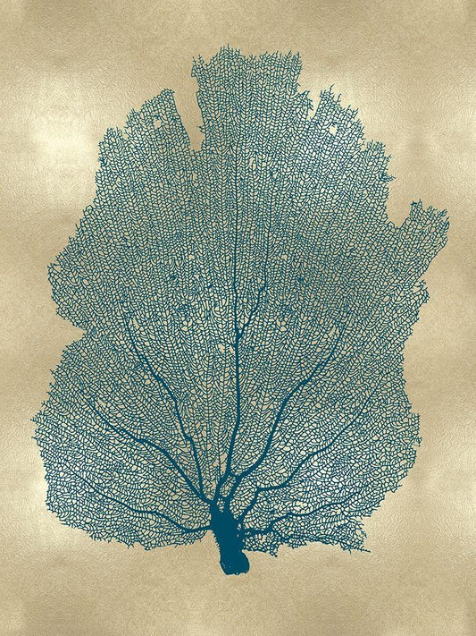 Sea Fan Teal on Gold I White Modern Wood Framed Art Print with Double Matting by Miller, Melonie