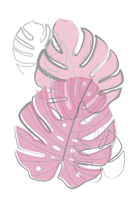 Pink Leaves White Modern Wood Framed Art Print with Double Matting by Pavlova, Martina