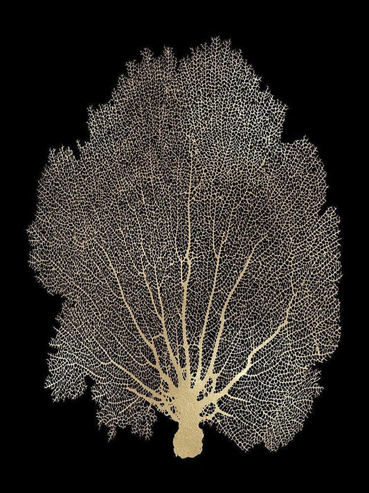 Sea Fan Gold on Black II White Modern Wood Framed Art Print with Double Matting by Miller, Melonie