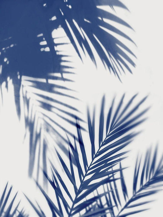 Palm Shadows Indigo II White Modern Wood Framed Art Print with Double Matting by Miller, Melonie