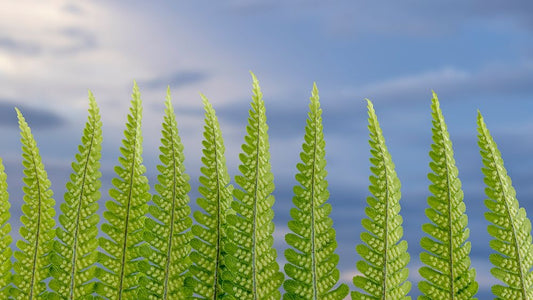 USA-Washington State-Seabeck Fern forest against sky White Modern Wood Framed Art Print with Double Matting by Jaynes Gallery