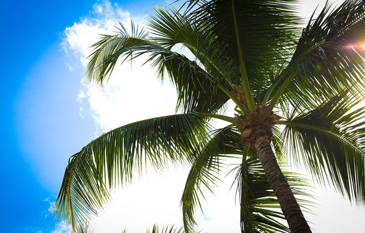 Palm Scene Black Ornate Wood Framed Art Print with Double Matting by Bryant, Susan