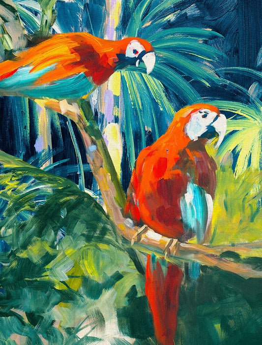 Parrots in Tropics I Black Ornate Wood Framed Art Print with Double Matting by Slivka, Jane