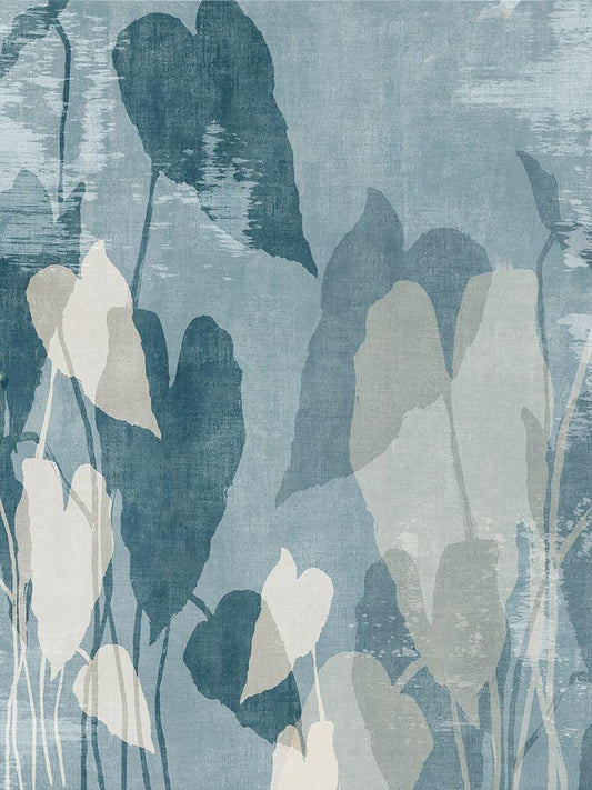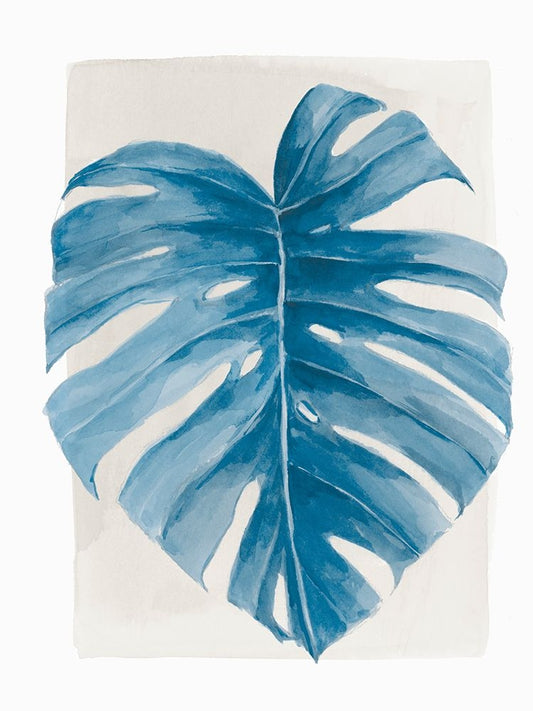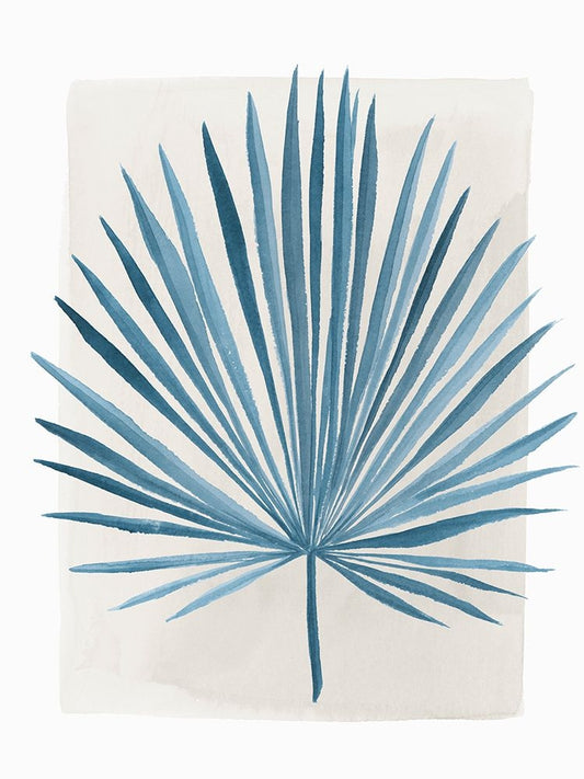 Blue Palm Leaves I Black Ornate Wood Framed Art Print with Double Matting by Aria K