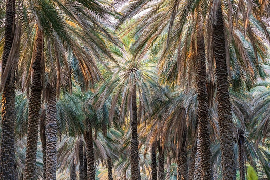 Middle East-Arabian Peninsula-Oman-Ad Dakhiliyah-Nizwa-Palm trees in Nizwa-Oman White Modern Wood Framed Art Print with Double Matting by Wilson, Emily M.