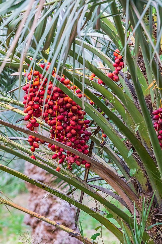Middle East-Arabian Peninsula-Oman-Ad Dakhiliyah-Nizwa-Dates on a date palm tree in Nizwa-Oman White Modern Wood Framed Art Print with Double Matting by Wilson, Emily M.
