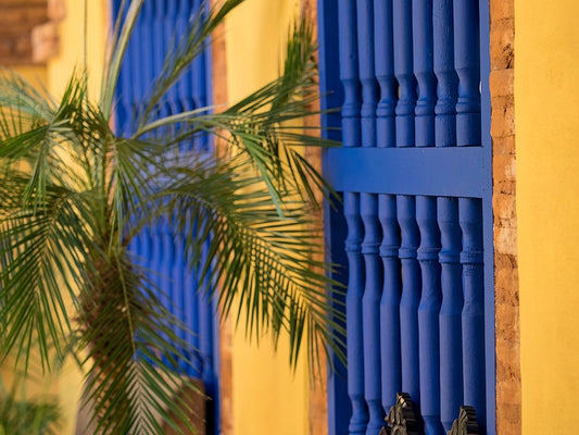 Cuba-Trinidad-UNESCO World Heritage Site-blue shutters in courtyard of Casa White Modern Wood Framed Art Print with Double Matting by Merrill Images