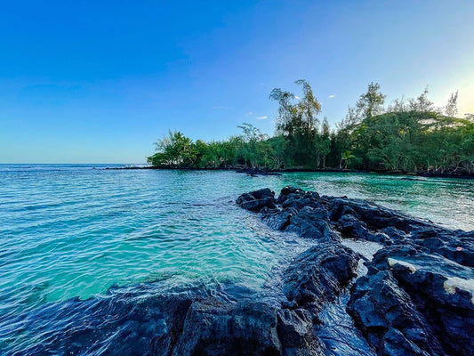 Honaunau Forgiving Pool Black Ornate Wood Framed Art Print with Double Matting by Nebula, Melissa