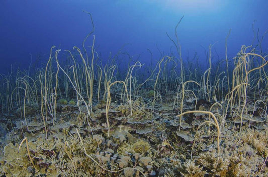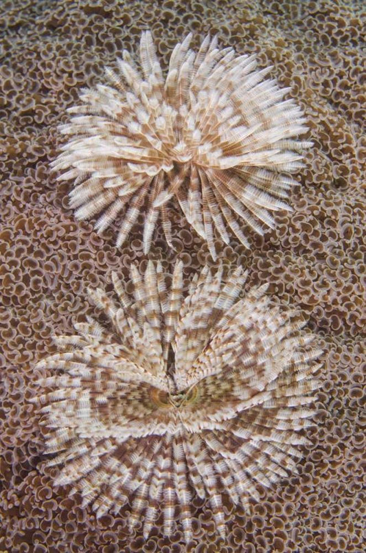 Indonesia, Komodo NP Close-up of tube worms White Modern Wood Framed Art Print with Double Matting by Shimlock, Jones