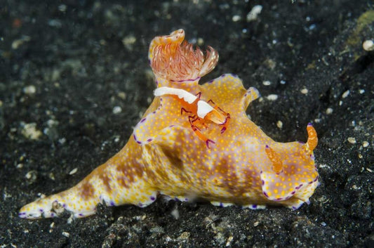 Indonesia, Lembeh Strait Shrimp on nudibranch White Modern Wood Framed Art Print with Double Matting by Shimlock, Jones