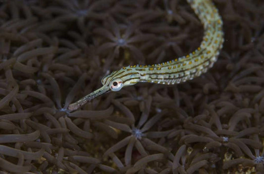 Indonesia, Sulawesi, Pipefish swimming over coral White Modern Wood Framed Art Print with Double Matting by Shimlock, Jones