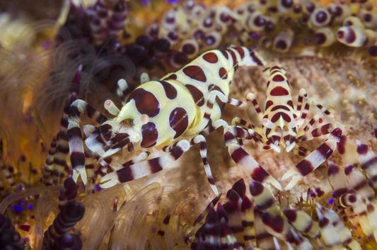 Indonesia, Lembeh Strait Shrimp and sea urchin White Modern Wood Framed Art Print with Double Matting by Shimlock, Jones
