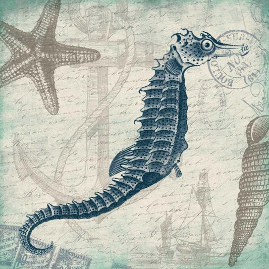 Seahorse Bordered Black Ornate Wood Framed Art Print with Double Matting by Grey, Jace