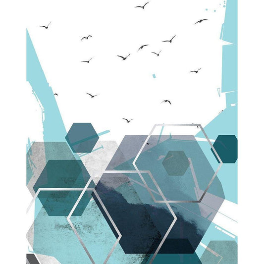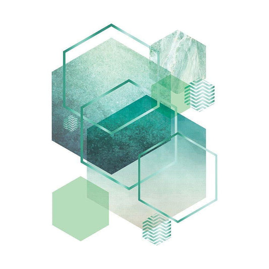 Geometric Minimalist Seafoam Gold Ornate Wood Framed Art Print with Double Matting by Urban Epiphany
