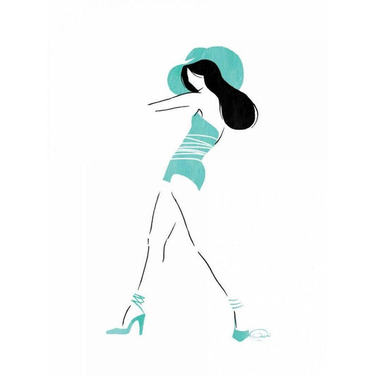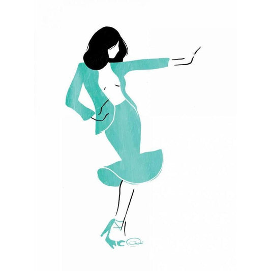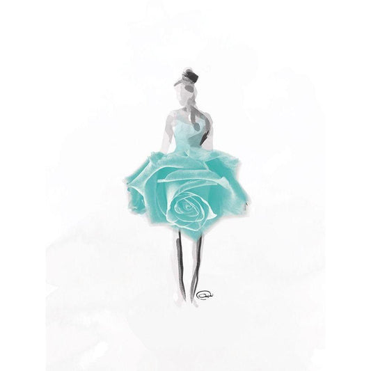Teal Rose Ballerina Gold Ornate Wood Framed Art Print with Double Matting by OnRei