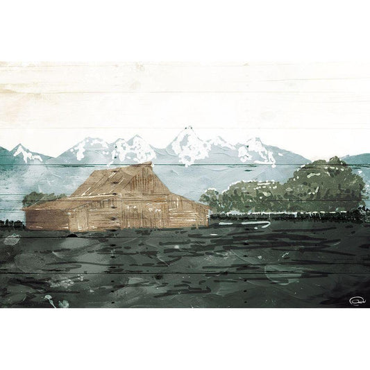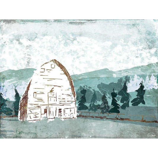 Barn In The Trees Gold Ornate Wood Framed Art Print with Double Matting by OnRei