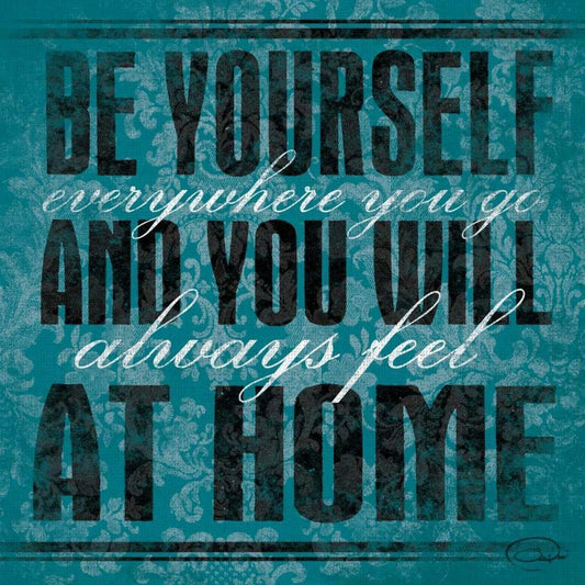 Be Yourself Teal Gold Ornate Wood Framed Art Print with Double Matting by OnRei