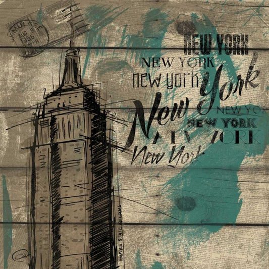 Natural New York Teal Gold Ornate Wood Framed Art Print with Double Matting by OnRei