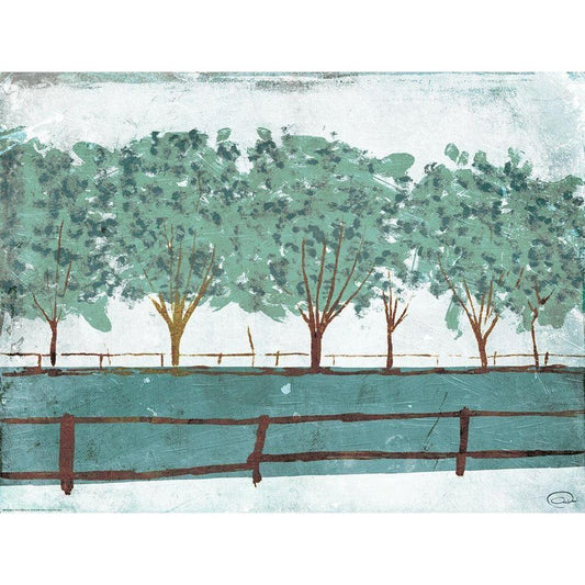 Trees And Fences Gold Ornate Wood Framed Art Print with Double Matting by OnRei