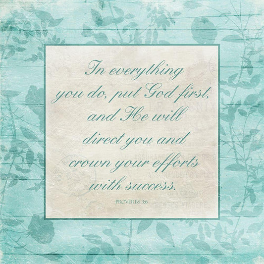 Quote Border Psalm Blue Gold Ornate Wood Framed Art Print with Double Matting by Villa, Mlli