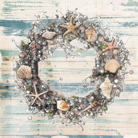 Wreath Blues Coastal Gold Ornate Wood Framed Art Print with Double Matting by Villa, Mlli