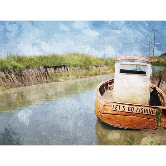Lets Go Fishing Gold Ornate Wood Framed Art Print with Double Matting by Villa, Mlli