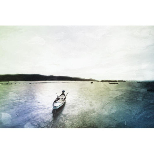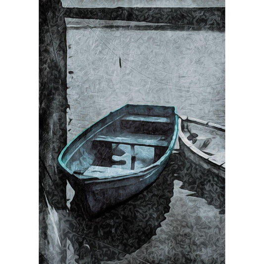 Boat In The Blue Gold Ornate Wood Framed Art Print with Double Matting by Villa, Mlli