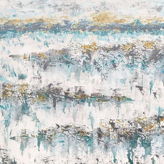 By the Sea Saffron Teal 1 Gold Ornate Wood Framed Art Print with Double Matting by Hogan, Melody