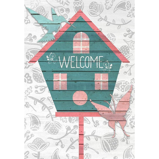 Welcome Birdhouse Gold Ornate Wood Framed Art Print with Double Matting by Kimberly, Allen