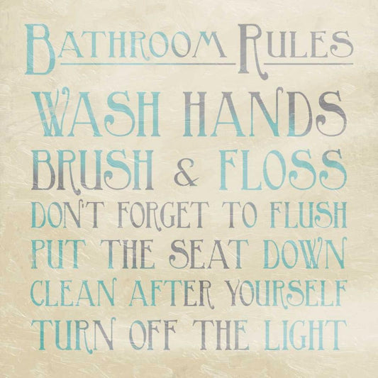 Bathroom Rules Teal Gold Ornate Wood Framed Art Print with Double Matting by Grey, Jace