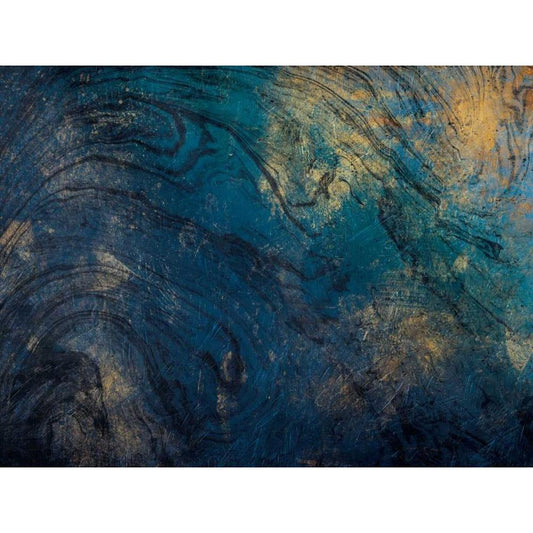 Watercolor Abstract Indigo Gold Ornate Wood Framed Art Print with Double Matting by Grey, Jace