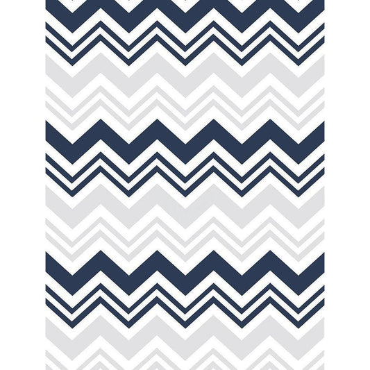 Blue Grey chevron Gold Ornate Wood Framed Art Print with Double Matting by Grey, Jace