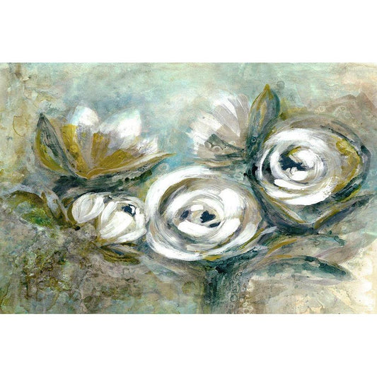 Sage And Teal Florals 1 Gold Ornate Wood Framed Art Print with Double Matting by Debs, Emma Catherine
